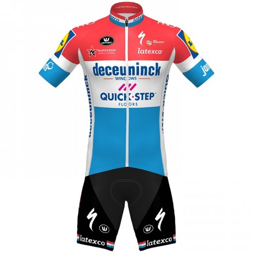 Conjunto Maillot + Culotte Corto con tirantes 2020 Quick-Step Floors Campeonatos de Luxemburgo N001
